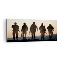 Obraz na płótnie - Sylwetki żołnierzy i myśliwce na tle zachodu słońca - 120x80cm - Witaj w naszym świecie - Nowoczesna dekoracja ścienna do salonu, kuchni i sypialni ARTTOR