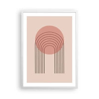 Obraz na płótnie - Abstrakcyjny motyw z różowym okręgiem i liniami - 70x100cm - Nieodparte przyciąganie - Nowoczesna dekoracja ścienna do salonu i sypialni ARTTOR
