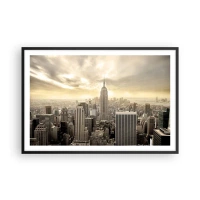 Plakat w czarnej ramie - Panorama miasta z widokiem na Empire State Building - 100x70cm - Nowy Jork utkany z szarości - Nowoczesna dekoracja ścienna do salonu i sypialni ARTTOR