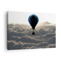 Obraz na płótnie - Balon na tle nieba z chmurami o zachodzie słońca - 70x50cm - Wędrowiec ponad chmurami - Nowoczesna dekoracja ścienna do salonu i sypialni ARTTOR