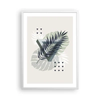 Obraz na płótnie - Geometryczna kompozycja z tropikalnymi liśćmi w odcieniach zieleni - 70x100cm - Natura i geometria – dwa porządki? - Nowoczesna dekoracja ścienna do salonu i sypialni ARTTOR