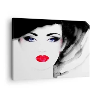 Obraz na płótnie - Portret kobiety z czerwonymi ustami i intensywnymi niebieskimi oczami - 70x50cm - Odpycha i przyzywa - Nowoczesna dekoracja ścienna do salonu i sypialni ARTTOR