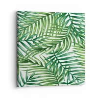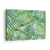 Obraz na płótnie - Zielone liście tropikalnych palm na jasnym tle - 70x50cm - Pod zielonym baldachimem - Nowoczesna dekoracja ścienna do salonu i sypialni ARTTOR