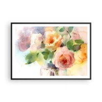 Plakat w czarnej ramie - Delikatne róże w akwarelowym stylu na jasnym tle - 100x70cm - Delikatne jak akwarela - Nowoczesna dekoracja ścienna do salonu i sypialni ARTTOR