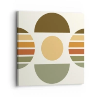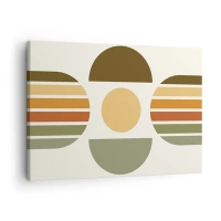 Obraz na płótnie - Geometryczna kompozycja z półokręgami i paskami w odcieniach ziemi - 70x50cm - W kolorach ziemi - Nowoczesna dekoracja ścienna do salonu i sypialni ARTTOR