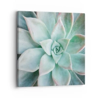 Obraz na płótnie - Zbliżenie na zielony sukulent w pastelowych barwach - 50x70cm - Serce pustyni - Nowoczesna dekoracja ścienna do salonu, kuchni i sypialni ARTTOR
