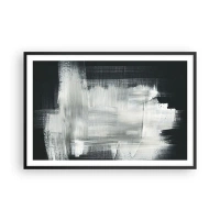 Plakat w czarnej ramie - Białe abstrakcyjne pociągnięcia na ciemnym tle - 100x70cm - Utkane z pionu i poziomu - Nowoczesna dekoracja ścienna do salonu i sypialni ARTTOR