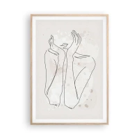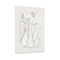 Obraz na szkle - Linia konturowa przedstawiająca kobiece dłonie na jasnym tle - 80x120cm - Rozmarzona chwila - Nowoczesna dekoracja ścienna do salonu i sypialni ARTTOR