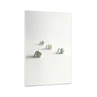 Obraz na szkle - Miniaturowe postacie pchające kształty na jasnym tle - 80x120cm - Samo życie - Nowoczesna dekoracja ścienna do salonu i sypialni ARTTOR