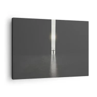 Obraz na płótnie - Sylwetka człowieka stojącego w wąskiej szczelinie światła w ciemnym pomieszczeniu - 50x70cm - Krok do jasnej przyszłości - Nowoczesna dekoracja ścienna do salonu, kuchni i sypialni ARTTOR