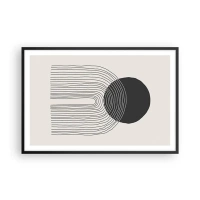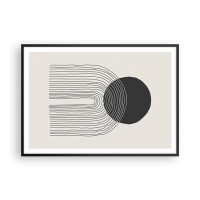 Plakat w czarnej ramie - Abstrakcyjny wzór z liniami i czarnym kołem na jasnym tle - 100x70cm - Drżenie i pewność - Nowoczesna dekoracja ścienna do salonu i sypialni ARTTOR