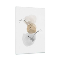 Obraz na szkle - Minimalistyczna abstrakcja w odcieniach beżu i szarości - 80x120cm - Powietrzne paciorki - Nowoczesna dekoracja ścienna do salonu i sypialni ARTTOR