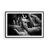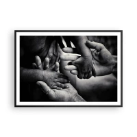 Plakat w czarnej ramie - Czarno-białe dłonie różnych pokoleń - 100x70cm - Być człowiekiem - Nowoczesna dekoracja ścienna do salonu i sypialni ARTTOR