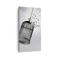 Obraz na szkle - Ptaki wylatujące z klatki na tle nieba - 80x120cm - Wiara...Nadzieja...Wolność! - Nowoczesna dekoracja ścienna do salonu i sypialni ARTTOR