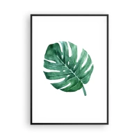 Plakat w czarnej ramie - Zielony liść monstery w minimalistycznym stylu - 100x70cm - Zielony koncept - Nowoczesna dekoracja ścienna do salonu i sypialni ARTTOR