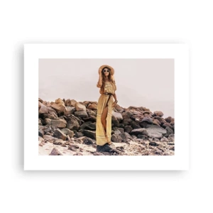 Plakat - Kobieta w stylu boho na tle kamienistej plaży - 100x70cm - Magia kamieni - Nowoczesna dekoracja ścienna do salonu i sypialni ARTTOR