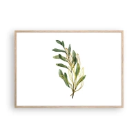 Plakat w czarnej ramie - Zielona gałązka z liśćmi na białym tle - 100x70cm - Wszystko co dobre - Nowoczesna dekoracja ścienna do salonu i sypialni ARTTOR