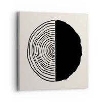 Obraz na płótnie - Minimalistyczna grafika czarno-biała przedstawiająca przekrój pnia drzewa - 50x70cm - Pół na pół - Nowoczesna dekoracja ścienna do salonu, kuchni i sypialni ARTTOR