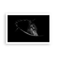 Plakat - Czarno-biały portret konia w subtelnej grze światła i cienia na ciemnym tle - 100x70cm - Czarny książę - Nowoczesna dekoracja ścienna do salonu i sypialni ARTTOR