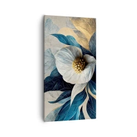 Obraz na płótnie - Kwiat z błękitnymi liśćmi na eleganckim tle - 120x80cm - Ma złote serce - Nowoczesna dekoracja ścienna do salonu, kuchni i sypialni ARTTOR