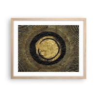 Plakat w czarnej ramie - Geometryczna kompozycja w czerni i złocie z promieniami - 100x70cm - Kompozycja glamour - Nowoczesna dekoracja ścienna do salonu i sypialni ARTTOR