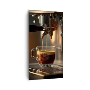 Obraz na płótnie - Ekspres do kawy z filiżanką aromatycznego espresso - 160x50cm - Zmysłowa mikstura - Nowoczesna dekoracja ścienna do salonu i sypialni ARTTOR
