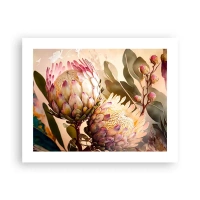 Plakat - Kolorowe kwiaty protei na delikatnym tle - 100x70cm - Czule objęte - Nowoczesna dekoracja ścienna do salonu i sypialni ARTTOR