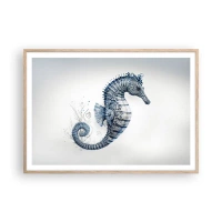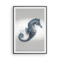 Plakat w czarnej ramie - Konik morski w odcieniach niebieskiego z detalami akwareli - 100x70cm - Subtelny żart natury - Nowoczesna dekoracja ścienna do salonu i sypialni ARTTOR