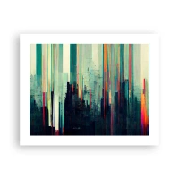 Plakat - Abstrakcja z pionowymi liniami i miejską panoramą - 100x70cm - Futurystyczne miasto - Nowoczesna dekoracja ścienna do salonu i sypialni ARTTOR