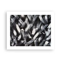 Plakat - Dynamiczna abstrakcja z białymi pociągnięciami pędzla na czarnym tle - 100x70cm - Abstrakcja w duchu industrialnym - Nowoczesna dekoracja ścienna do salonu i sypialni ARTTOR