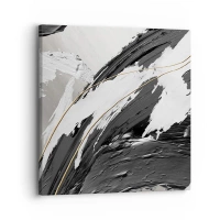 Obraz na płótnie - Czarno-białe pociągnięcia farby z delikatnym złotym akcentem - 70x50cm - Abstrakcja z rozmachem - Nowoczesna dekoracja ścienna do salonu i sypialni ARTTOR
