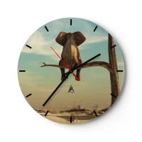 Zegar ścienny - Siedzący słoń na gałęzi samotnego drzewa na tle nieba - 30x30cm - Nowy punkt widzenia - Nowoczesna dekoracja ścienna do salonu, kuchni i sypialni ARTTOR