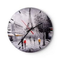 Zegar ścienny - Ulica w Paryżu z wieżą Eiffla w tle - 30x30cm - Paryska przechadzka - Nowoczesna dekoracja ścienna do salonu, kuchni i sypialni ARTTOR