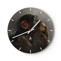 Zegar ścienny - Zamyślony szympans na ciemnym tle - 30x30cm - Z pewnością myśliciel - Nowoczesna dekoracja ścienna do salonu, kuchni i sypialni ARTTOR