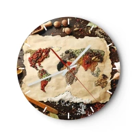 Zegar ścienny - Mapa świata z przypraw na drewnianym tle - 30x30cm - Wszystkie smaki świata - Nowoczesna dekoracja ścienna do salonu, kuchni i sypialni ARTTOR