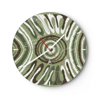 Zegar ścienny - Zielono-brązowa symetryczna kompozycja z koncentrycznymi wzorami - 30x30cm - Eksplozja emocji - Nowoczesna dekoracja ścienna do salonu, kuchni i sypialni ARTTOR