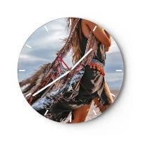 Zegar ścienny - Styl boho na tle plaży z frędzlami i ozdobami - 30x30cm - Dziewczyna szamana - Nowoczesna dekoracja ścienna do salonu, kuchni i sypialni ARTTOR