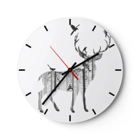 Zegar ścienny - Sylwetka jelenia wypełniona motywem lasu i ptaków - 30x30cm - Dobry duch lasu - Nowoczesna dekoracja ścienna do salonu, kuchni i sypialni ARTTOR