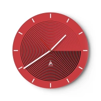 Zegar ścienny - Czerwone tło z czarnymi koncentrycznymi okręgami i kontrastem - 30x30cm - Ruch kolisty - Nowoczesna dekoracja ścienna do salonu, kuchni i sypialni ARTTOR