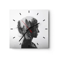 Zegar ścienny - Subtelny portret z elementami natury - 30x30cm - Pani sosnowego lasu - Nowoczesna dekoracja ścienna do salonu i sypialni ARTTOR