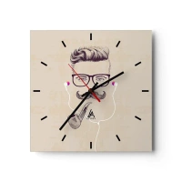 Zegar ścienny - Retro portret mężczyzny z fajką, słuchawkami i okularami - 30x30cm - Prawdziwy mężczyzna? - Nowoczesna dekoracja ścienna do salonu i sypialni ARTTOR