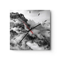 Zegar ścienny - Czarno-biały widok gór otoczonych chmurami - 30x30cm - Piękne i okrutne - Nowoczesna dekoracja ścienna do salonu i sypialni ARTTOR