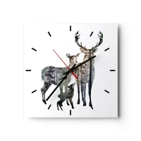Zegar ścienny - Leśny krajobraz w sylwetkach jeleni - 30x30cm - Rodzinna fotografia - Nowoczesna dekoracja ścienna do salonu i sypialni ARTTOR