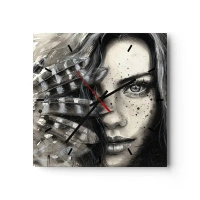 Zegar ścienny - Artystyczny portret kobiety z abstrakcyjnymi detalami - 30x30cm - Dzika piękność - Nowoczesna dekoracja ścienna do salonu i sypialni ARTTOR