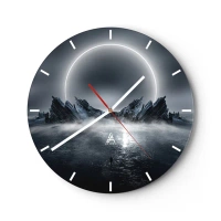 Zegar ścienny - Futurystyczny krajobraz z zaćmieniem i ostrymi skałami - 30x30cm - Finał opowieści - Nowoczesna dekoracja ścienna do salonu, kuchni i sypialni ARTTOR