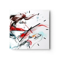 Zegar ścienny - Artystyczny portret kobiety z detalami i czerwonym akcentem - 30x30cm - Z nią codziennie jest święto - Nowoczesna dekoracja ścienna do salonu i sypialni ARTTOR
