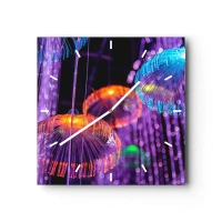 Zegar ścienny - Kolorowe świetlne meduzy w ciemnym otoczeniu - 30x30cm - Świetlna fontanna - Nowoczesna dekoracja ścienna do salonu i sypialni ARTTOR