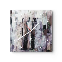 Zegar ścienny - Abstrakcyjna kompozycja z trzema postaciami w pastelowych barwach - 30x30cm - Tajemnicza trójka - Nowoczesna dekoracja ścienna do salonu i sypialni ARTTOR