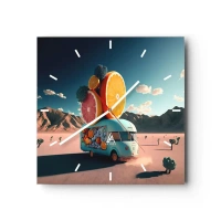 Zegar ścienny - Furgonetka z owocami w pustynnym krajobrazie - 30x30cm - Smak wakacji - Nowoczesna dekoracja ścienna do salonu i sypialni ARTTOR