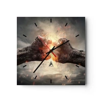 Zegar ścienny - Zaciśnięte pięści w dynamicznej scenerii z ogniem - 30x30cm - Stań do walki - Nowoczesna dekoracja ścienna do salonu i sypialni ARTTOR